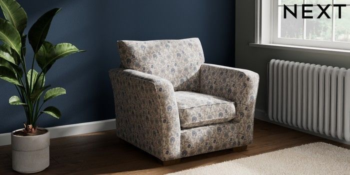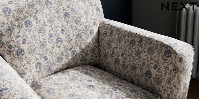 7.3.1 Buy Heath Highback Armchair Relaxed Linen Look Print Woodblock Floral Blue Block - Mid from the Next UK online shop Click here to use our accessible website