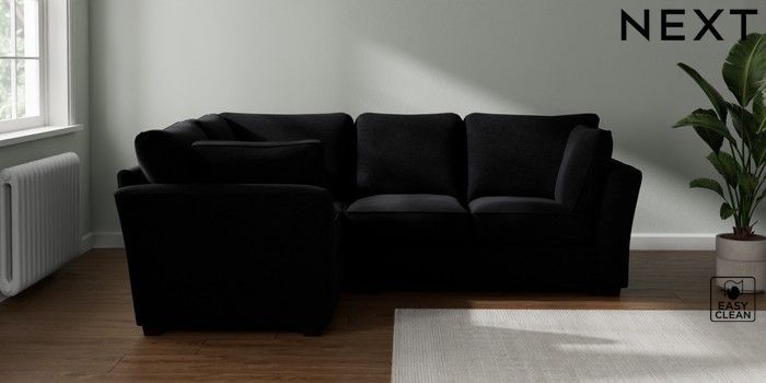 7.2.6 Buy Heath Highback Medium Corner Sofa - Left Hand Fine Chenille Easy Clean Black Block - Dark from the Next UK online shop Click here to use our accessible website