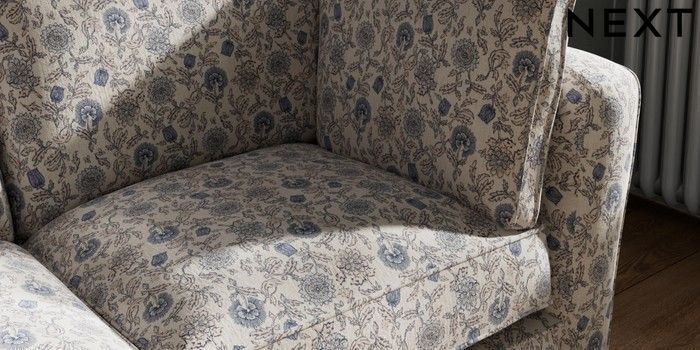 7.3.1 Buy Heath Highback Sofa Bed Relaxed Linen Look Print Woodblock Floral Blue Block - Light from the Next UK online shop Click here to use our accessible website