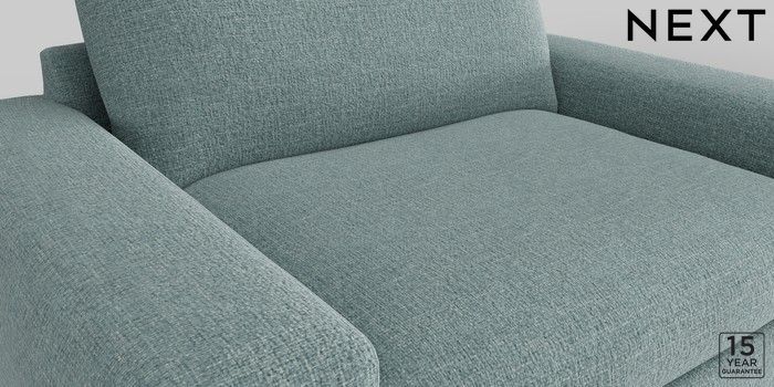 6.11.8 Buy Houghton Deep Relaxed Sit 2 Seater Small Sofa Chunky Chenille Light Teal Green Large Square Angle - Chrome Metal from the Next UK online shop Click here to use our accessible website