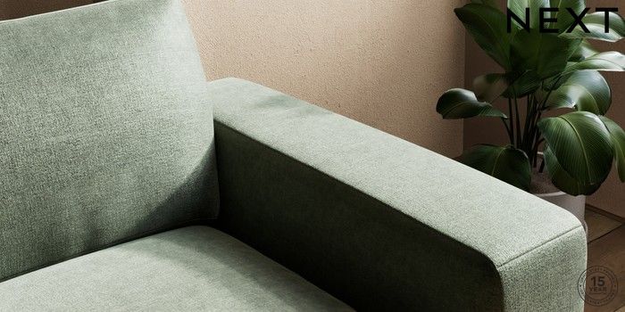 7.0.3 Buy Houghton Deep Relaxed Sit 2 Seater Small Sofa Luxe Chenille Mid Green Large Square Angle - Chrome Metal from the Next UK online shop Click here to use our accessible website