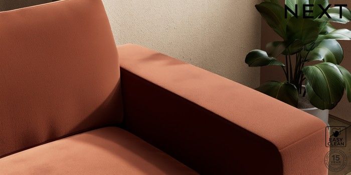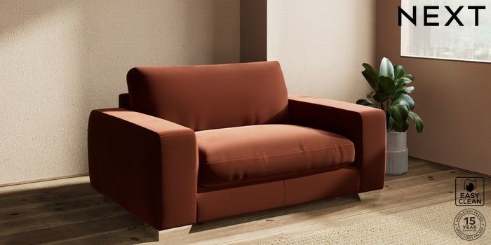 6.12.13 Buy Houghton Deep Relaxed Sit 2 Seater Small Sofa Plush Velvet Easy Clean Ginger Orange Large Square Angle - Chrome Metal from the Next UK online shop Click here to use our accessible website