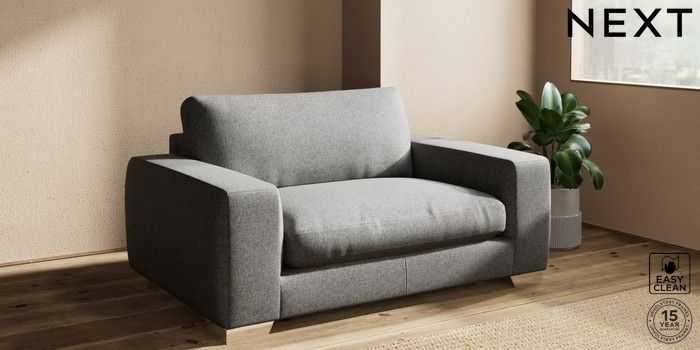 6.12.13 Buy Houghton Deep Relaxed Sit 2 Seater Small Sofa Tweedy Blend Easy Clean Dark Grey Large Square Angle - Chrome Metal from the Next UK online shop Click here to use our accessible website