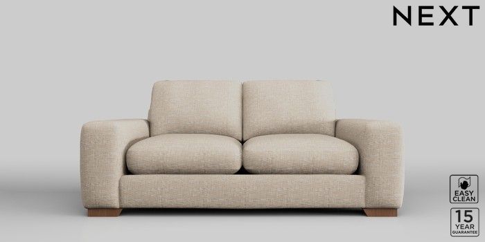 6.11.4 Buy Houghton Deep Relaxed Sit 3 Seater Small Sofa Boucle Weave Easy Clean Dark Natural Large Square Angle - Mid from the Next UK online shop Click here to use our accessible website