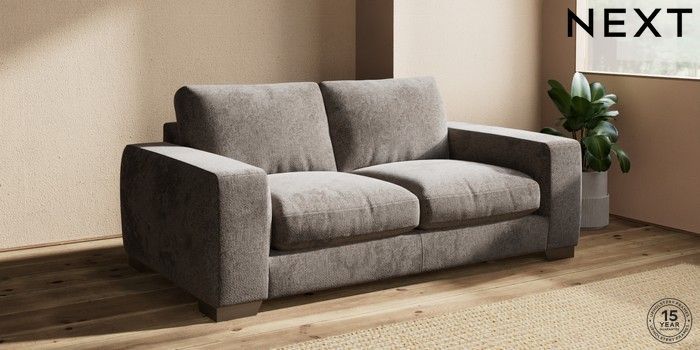 6.12.13 Buy Houghton Deep Relaxed Sit 3 Seater Small Sofa Chunky Chenille Mink Brown Large Square Angle - Gunmetal from the Next UK online shop Click here to use our accessible website