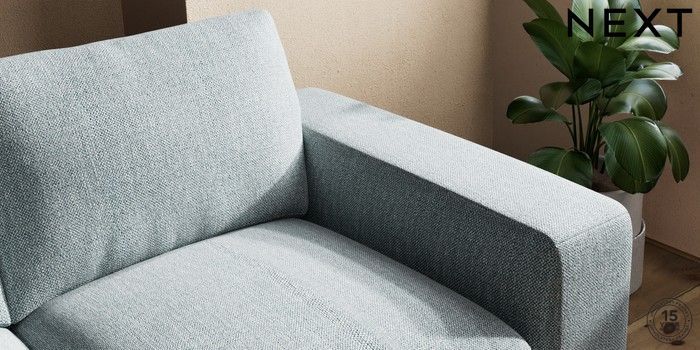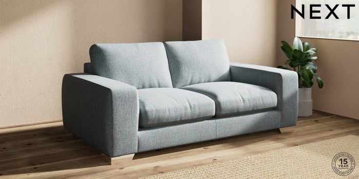 6.12.13 Buy Houghton Deep Relaxed Sit 3 Seater Small Sofa Chunky Weave Mid Blue Large Square Angle - Chrome Metal from the Next UK online shop Click here to use our accessible website