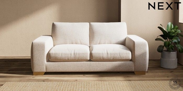 7.2.6 Buy Houghton Deep Relaxed Sit 3 Seater Small Sofa Multi Weave Mid Natural Large Square Angle - Brushed Brass from the Next UK online shop Click here to use our accessible website