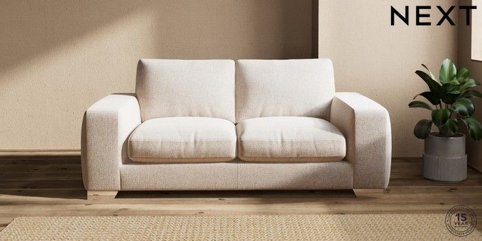 7.2.6 Buy Houghton Deep Relaxed Sit 3 Seater Small Sofa Multi Weave Mid Natural Large Square Angle - Chrome Metal from the Next UK online shop Click here to use our accessible website