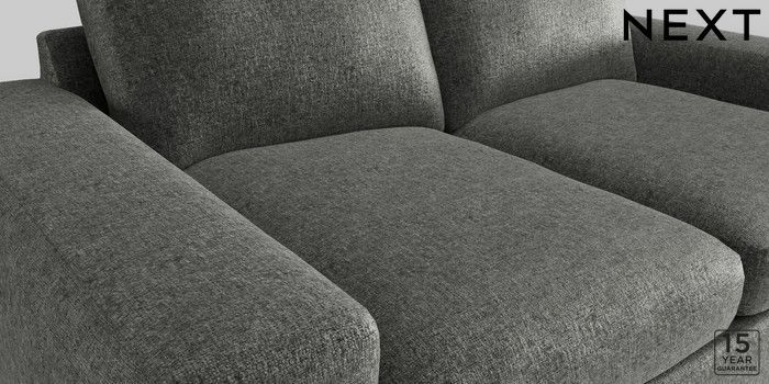 6.11.4 Buy Houghton Deep Relaxed Sit 3 Seater Small Sofa Plush Chenille Dark Grey Large Square Angle - Chrome Metal from the Next UK online shop Click here to use our accessible website