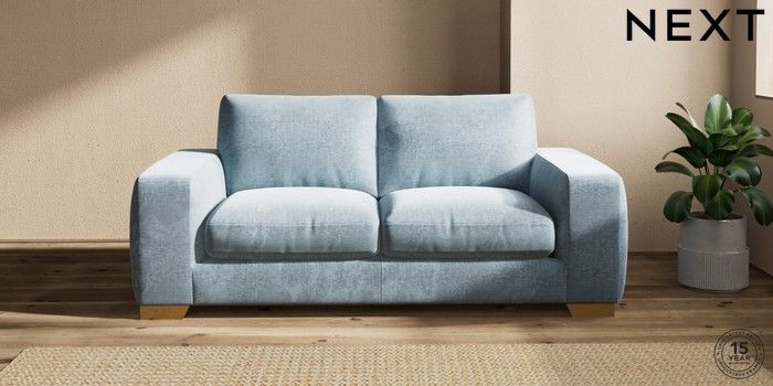 7.2.6 Buy Houghton Deep Relaxed Sit 3 Seater Small Sofa Plush Chenille Light Blue Large Square Angle - Brushed Brass from the Next UK online shop Click here to use our accessible website