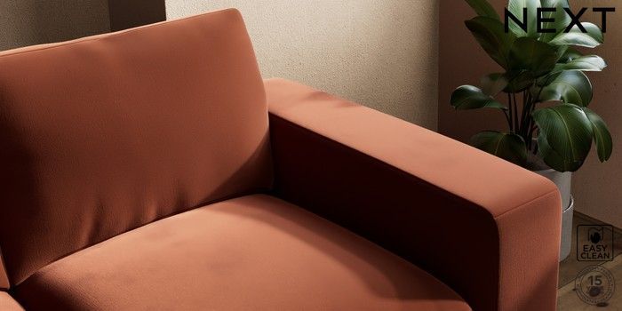 6.12.13 Buy Houghton Deep Relaxed Sit 3 Seater Small Sofa Plush Velvet Easy Clean Ginger Orange Large Square Angle - Gunmetal from the Next UK online shop Click here to use our accessible website