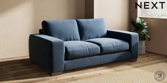 7.0.3 Buy Houghton Deep Relaxed Sit 3 Seater Small Sofa Ripple Chenille Dark Blue Large Square Angle - Gunmetal from the Next UK online shop Click here to use our accessible website