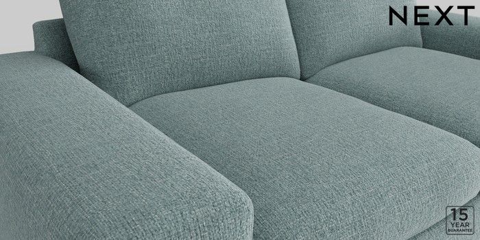 6.11.8 Buy Houghton Deep Relaxed Sit 3 Seater Sofa Chunky Chenille Light Teal Green Large Square Angle - Chrome Metal from the Next UK online shop Click here to use our accessible website