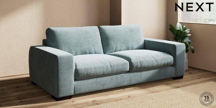 6.12.13 Buy Houghton Deep Relaxed Sit 3 Seater Sofa Chunky Chenille Light Teal Green Large Square Angle - Dark from the Next UK online shop Click here to use our accessible website