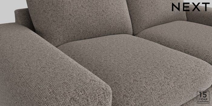 6.11.4 Buy Houghton Deep Relaxed Sit 3 Seater Sofa Chunky Chenille Mink Brown Large Square Angle - Brushed Brass from the Next UK online shop Click here to use our accessible website