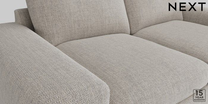 6.11.4 Buy Houghton Deep Relaxed Sit 3 Seater Sofa Chunky Weave Dove Grey Large Square Angle - Chrome Metal from the Next UK online shop Click here to use our accessible website