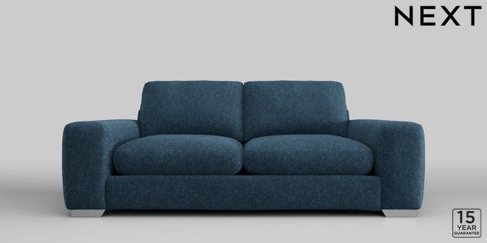 6.12.1 Buy Houghton Deep Relaxed Sit 3 Seater Sofa Cotswold Chenille Dark Blue Large Square Angle - Chrome Metal from the Next UK online shop Click here to use our accessible website