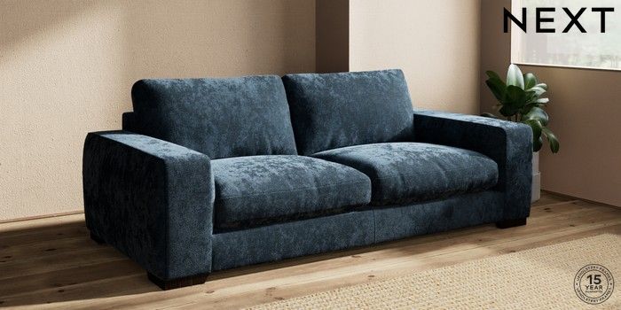 6.12.13 Buy Houghton Deep Relaxed Sit 3 Seater Sofa Distressed Velour Midnight Blue Large Square Angle - Dark from the Next UK online shop Click here to use our accessible website