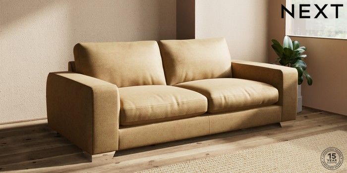 7.0.3 Buy Houghton Deep Relaxed Sit 3 Seater Sofa Luxe Chenille Honey Yellow Large Square Angle - Chrome Metal from the Next UK online shop Click here to use our accessible website