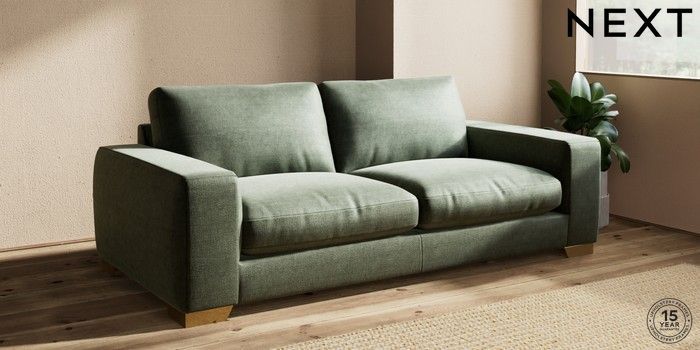 7.0.3 Buy Houghton Deep Relaxed Sit 3 Seater Sofa Luxe Chenille Mid Green Large Square Angle - Brushed Brass from the Next UK online shop Click here to use our accessible website
