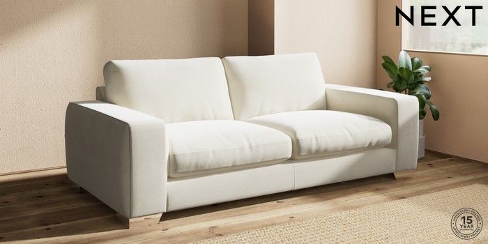 7.0.3 Buy Houghton Deep Relaxed Sit 3 Seater Sofa Luxe Chenille Oyster Large Square Angle - Chrome Metal from the Next UK online shop Click here to use our accessible website