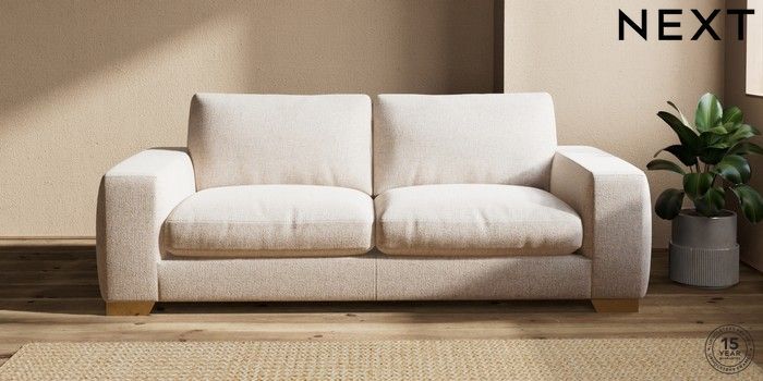 7.2.6 Buy Houghton Deep Relaxed Sit 3 Seater Sofa Multi Weave Mid Natural Large Square Angle - Brushed Brass from the Next UK online shop Click here to use our accessible website