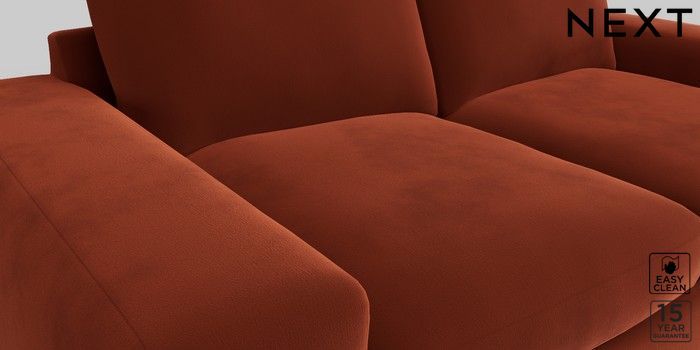 6.11.8 Buy Houghton Deep Relaxed Sit 3 Seater Sofa Plush Velvet Easy Clean Ginger Orange Large Square Angle - Brushed Brass from the Next UK online shop Click here to use our accessible website