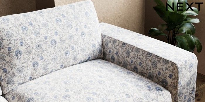 7.3.1 Buy Houghton Deep Relaxed Sit 3 Seater Sofa Relaxed Linen Look Print Woodblock Floral Blue Large Square Angle - Brushed Brass from the Next UK online shop Click here to use our accessible website