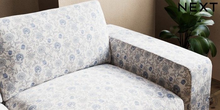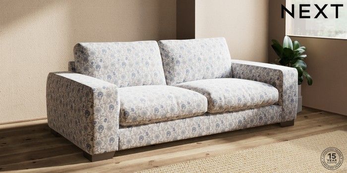 7.3.1 Buy Houghton Deep Relaxed Sit 3 Seater Sofa Relaxed Linen Look Print Woodblock Floral Blue Large Square Angle - Gunmetal from the Next UK online shop