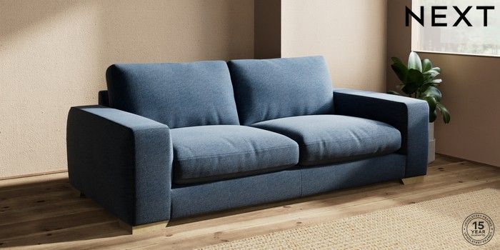 7.0.3 Buy Houghton Deep Relaxed Sit 3 Seater Sofa Ripple Chenille Dark Blue Large Square Angle - Light from the Next UK online shop Click here to use our accessible website