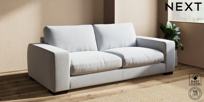 6.12.13 Buy Houghton Deep Relaxed Sit 3 Seater Sofa Tweedy Blend Easy Clean Light Silver Grey Large Square Angle - Dark from the Next UK online shop Click here to use our accessible website