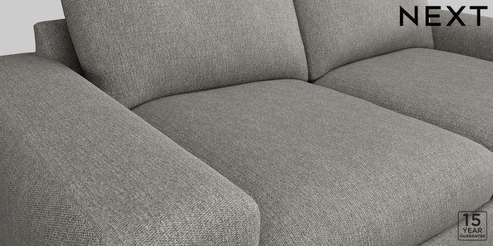 6.11.8 Buy Houghton Deep Relaxed Sit 3 Seater Sofa Tweedy Chenille Mid Grey Large Square Angle - Brushed Brass from the Next UK online shop Click here to use our accessible website