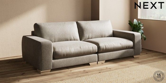 7.0.3 Buy Houghton Deep Relaxed Sit 4 Seater Sofa Cotswold Chenille Mid Mink Brown Large Square Angle - Chrome Metal from the Next UK online shop Click here to use our accessible website