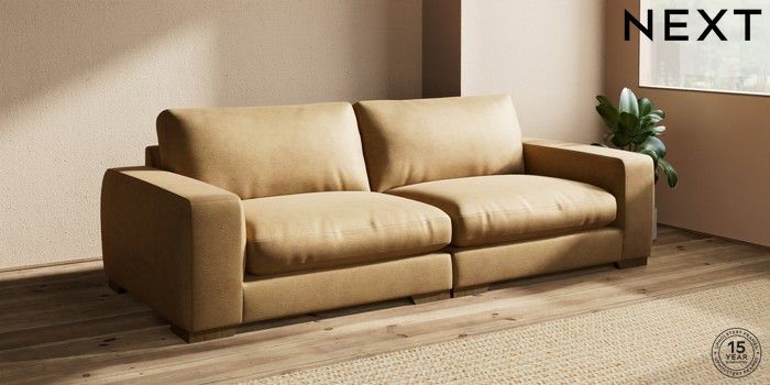 7.0.3 Buy Houghton Deep Relaxed Sit 4 Seater Sofa Luxe Chenille Honey Yellow Large Square Angle - Mid from the Next UK online shop Click here to use our accessible website