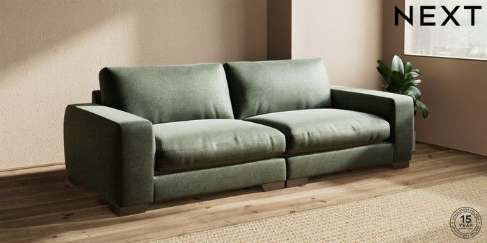 7.0.3 Buy Houghton Deep Relaxed Sit 4 Seater Sofa Luxe Chenille Mid Green Large Square Angle - Gunmetal from the Next UK online shop Click here to use our accessible website