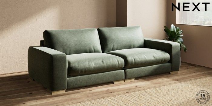 7.0.3 Buy Houghton Deep Relaxed Sit 4 Seater Sofa Luxe Chenille Mid Green Large Square Angle - Light from the Next UK online shop Click here to use our accessible website