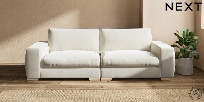 7.0.3 Buy Houghton Deep Relaxed Sit 4 Seater Sofa Luxe Chenille Oyster Large Square Angle - Chrome Metal from the Next UK online shop Click here to use our accessible website