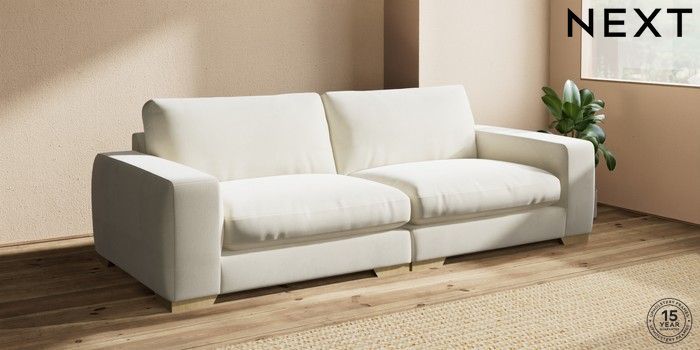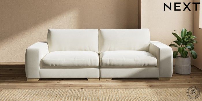 7.0.3 Buy Houghton Deep Relaxed Sit 4 Seater Sofa Luxe Chenille Oyster Large Square Angle - Light from the Next UK online shop Click here to use our accessible website