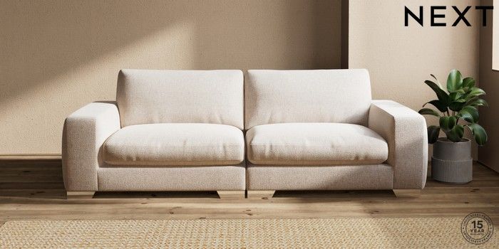 7.2.6 Buy Houghton Deep Relaxed Sit 4 Seater Sofa Multi Weave Mid Natural Large Square Angle - Chrome Metal from the Next UK online shop Click here to use our accessible website