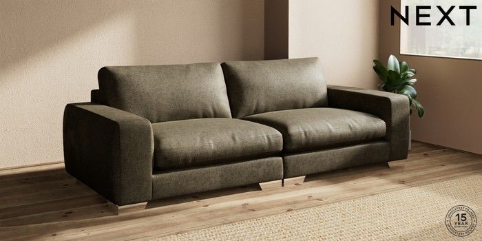 6.12.13 Buy Houghton Deep Relaxed Sit 4 Seater Sofa Plush Chenille Moss Green Large Square Angle - Chrome Metal from the Next UK online shop Click here to use our accessible website