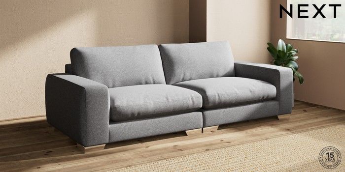 6.12.13 Buy Houghton Deep Relaxed Sit 4 Seater Sofa Studio Chenille Mid Grey Large Square Angle - Chrome Metal from the Next UK online shop Click here to use our accessible website