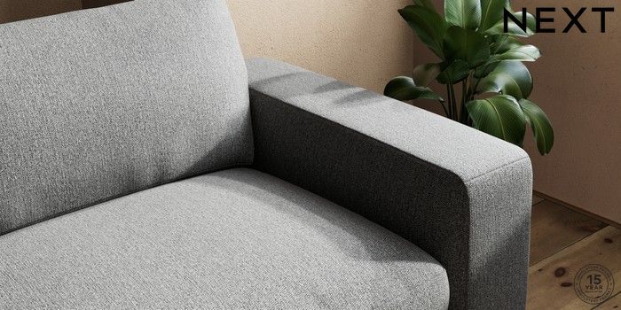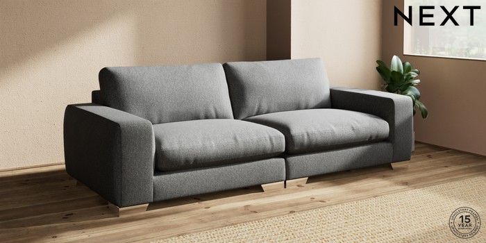 6.12.13 Buy Houghton Deep Relaxed Sit 4 Seater Sofa Tweedy Chenille Dark Grey Large Square Angle - Chrome Metal from the Next UK online shop Click here to use our accessible website