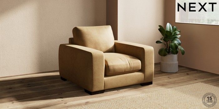 7.0.3 Buy Houghton Deep Relaxed Sit Armchair Luxe Chenille Honey Yellow Large Square Angle - Dark from the Next UK online shop Click here to use our accessible website