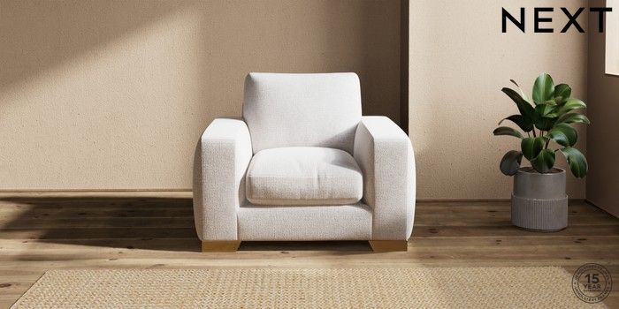 7.2.6 Buy Houghton Deep Relaxed Sit Armchair Multi Weave Oyster Large Square Angle - Brushed Brass from the Next UK online shop Click here to use our accessible website