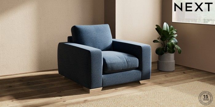 7.0.3 Buy Houghton Deep Relaxed Sit Armchair Ripple Chenille Dark Blue Large Square Angle - Chrome Metal from the Next UK online shop Click here to use our accessible website