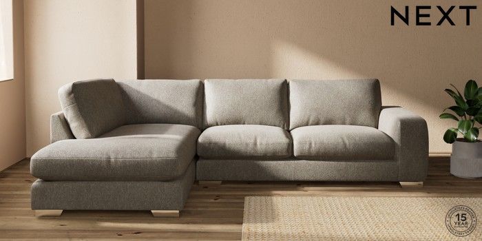7.0.3 Buy Houghton Deep Relaxed Sit Large Corner Chaise - Left Hand Cotswold Chenille Mid Mink Brown Large Square Angle - Chrome Metal from the Next UK online shop Click here to use our accessible website
