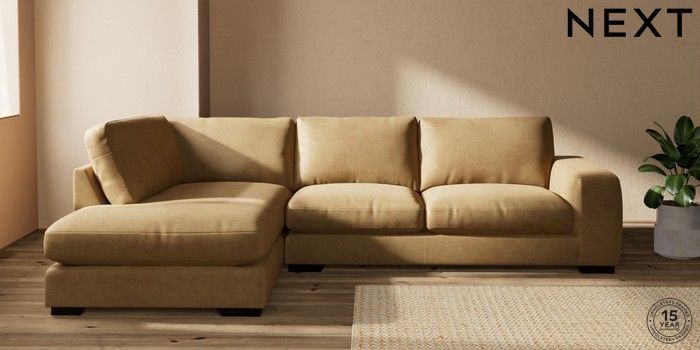 7.0.3 Buy Houghton Deep Relaxed Sit Large Corner Chaise - Left Hand Luxe Chenille Honey Yellow Large Square Angle - Dark from the Next UK online shop Click here to use our accessible website