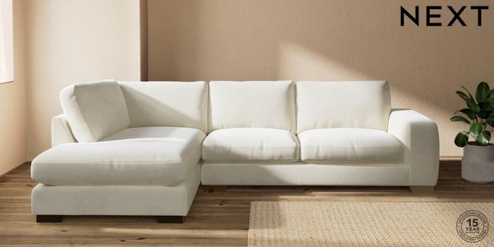 7.0.3 Buy Houghton Deep Relaxed Sit Large Corner Chaise - Left Hand Luxe Chenille Oyster Large Square Angle - Brushed Brass from the Next UK online shop Click here to use our accessible website