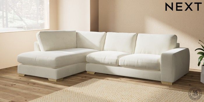7.0.3 Buy Houghton Deep Relaxed Sit Large Corner Chaise - Left Hand Luxe Chenille Oyster Large Square Angle - Light from the Next UK online shop Click here to use our accessible website