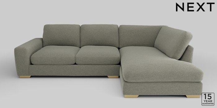 6.12.1 Buy Houghton Deep Relaxed Sit Large Corner Chaise - Right Hand Chunky Marl Light Olive Green Large Square Angle - Brushed Brass from the Next UK online shop Click here to use our accessible website